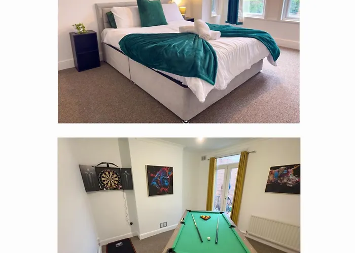 Az Amorly House - Sleeps 8 Free Permit Parking Big Spacious With Games Room villa magába foglal étkezőt elektromos vízforralóval, hűtővel és konyhai edényekkel. A Norwich városi villától körülbelül 5 percnyi sétára van a The Dragon Super Kitchen, amely Chinese ételeket kínál. A vendégek továbbá a Bracondale / Corton Road buszállomást a közelben találják a Norwich városi ingatlantól. Olyan tevékenységek sorát kínálják, mint a darts.